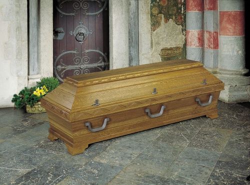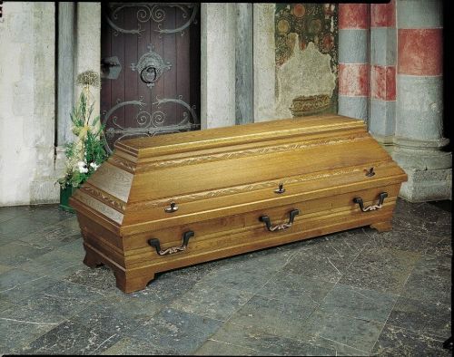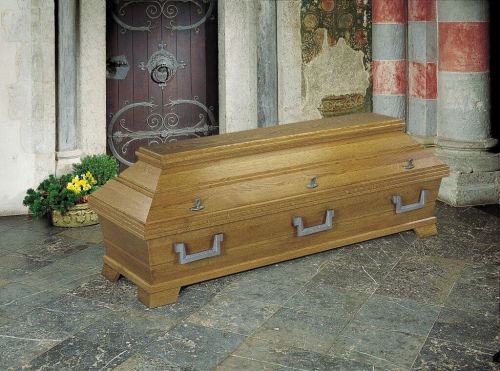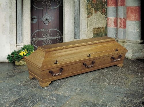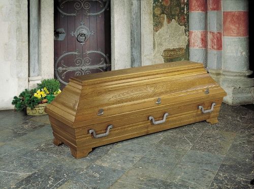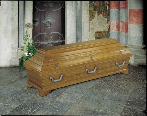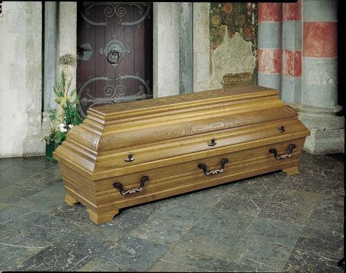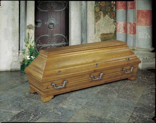 Nr. E 6/211 Hoher Sarg in Eiche rustikal Griffe Zinn |